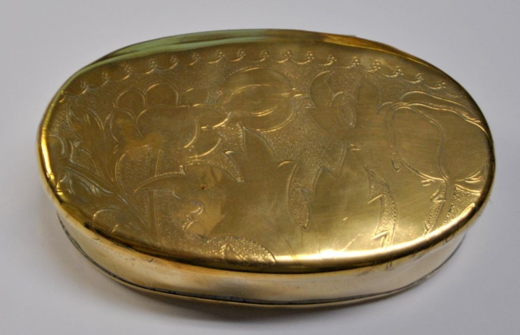 Tobaksdåse af messing, oval, 18.årh. Holland.