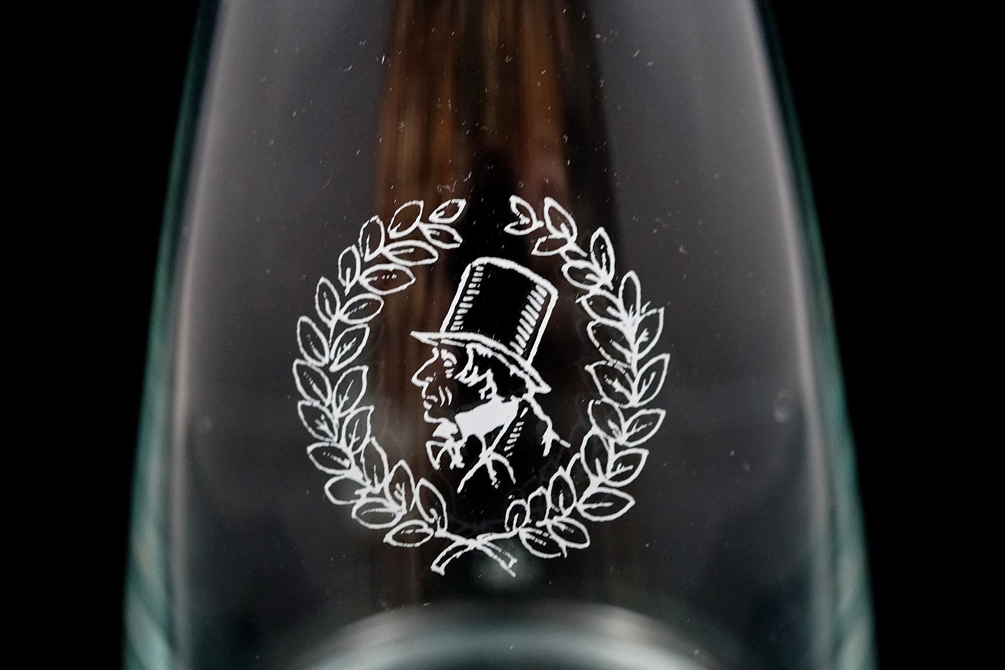 Holmegaard Glasværk. Karaffel med profilpotræt af H. C. Andersen