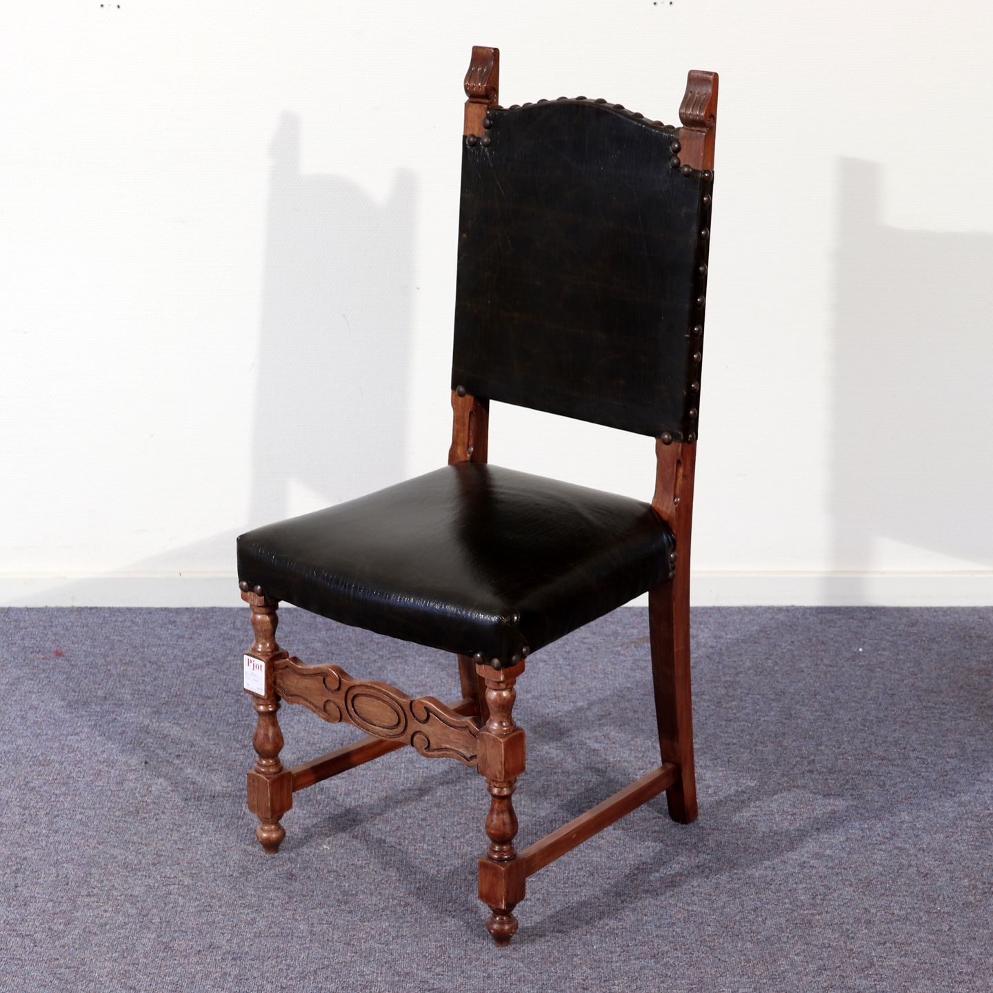 Stol i mahogni med kunstlæder betræk, fra 1930erne.