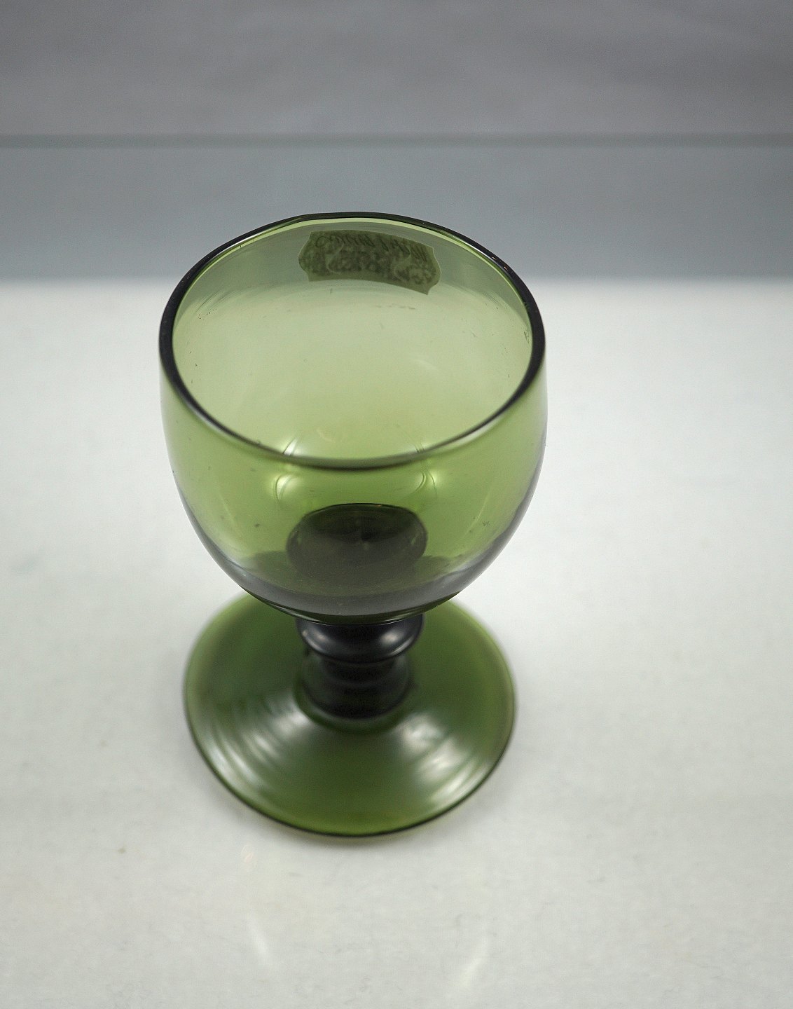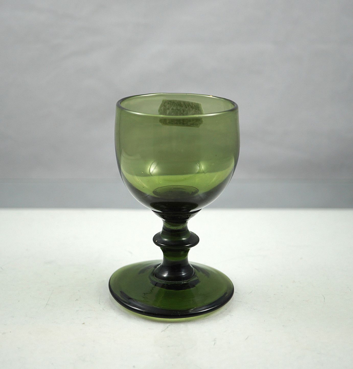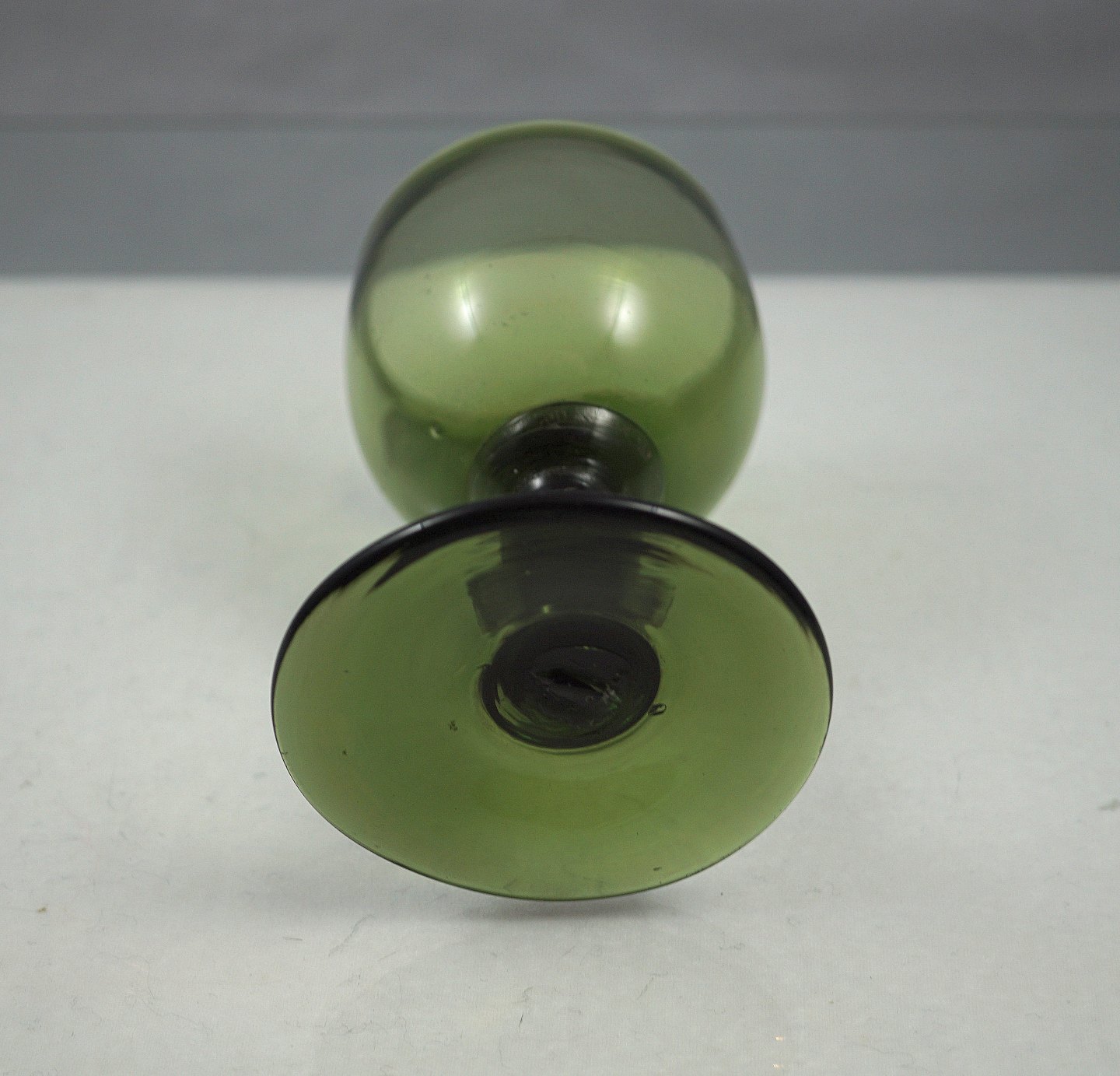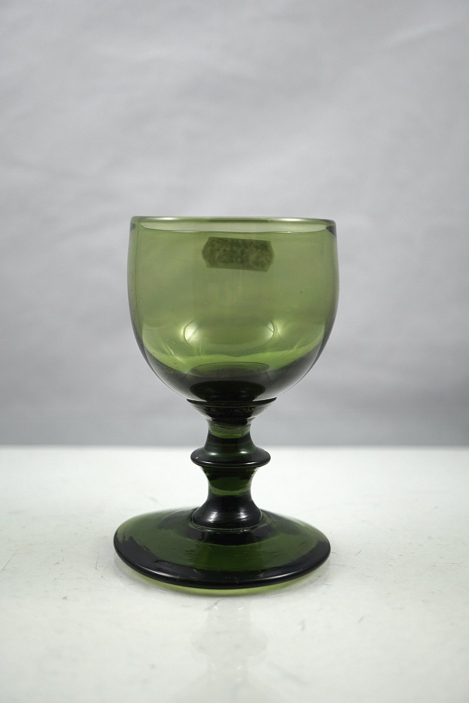Holmegaard-/Kastrup Glasværk. Grønt drikkeglas med rund kumme og en knap på stilk