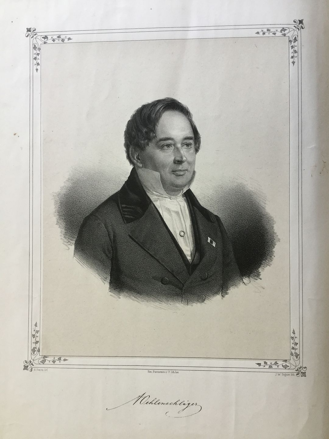 Portræt af Guldalderdigteren Adam Gottlob Oehlenschläger - litografi af Em. Bærentzen ca. 1850.