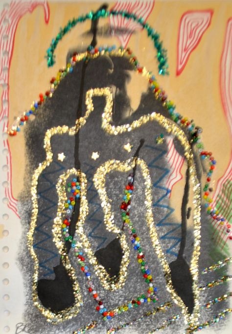 Bredtved, Michael (1959 -) Denmark: Composition. Signed. Mixed media on paper. 26 x 18.5 cm.