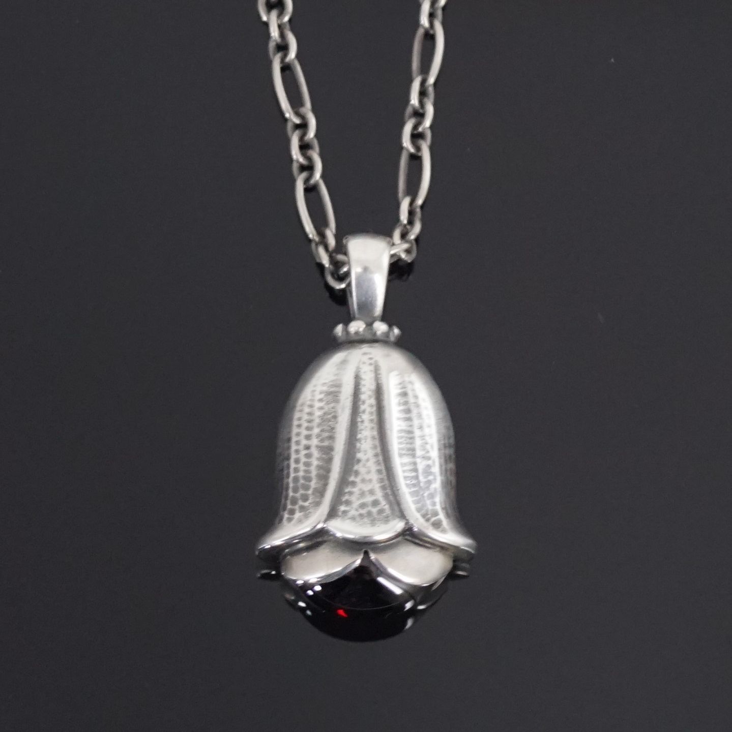 Georg Jensen; Heritage årssmykke 2007 af sterling sølv, prydet med granat. Vedhæng H. 2,6 cm. B. 1,5 cm.