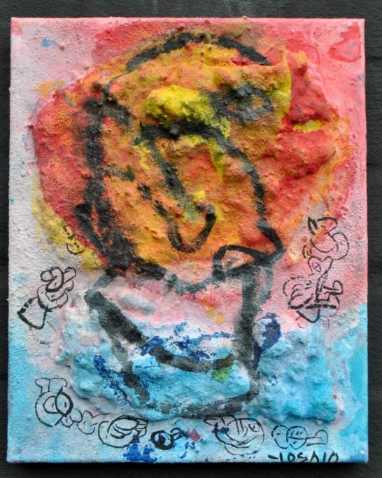 Nakajima, Yoshio (1940 -) Sweden / Japan: Pax. Mixing media on canvas. Signed 2019. 27 x 22 cm.