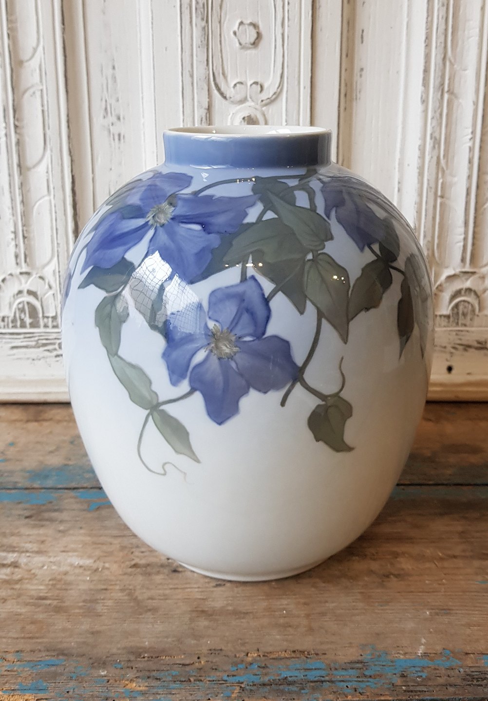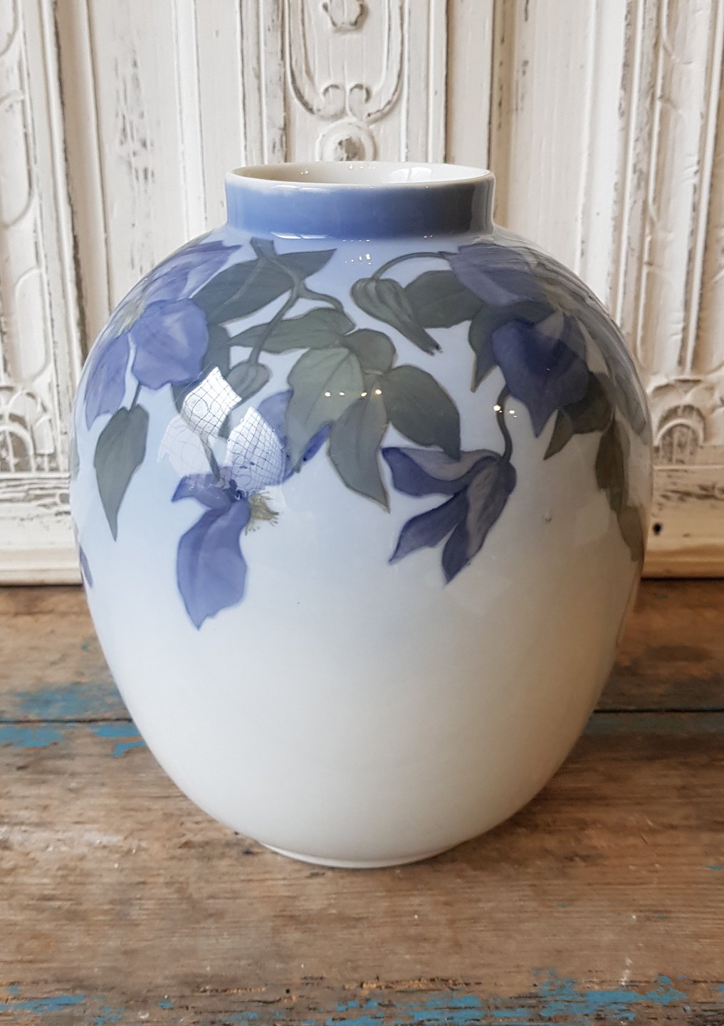 Royal Copenhagen unika - Art Nouveau vase, smukt dekoreret med blå klematis.
