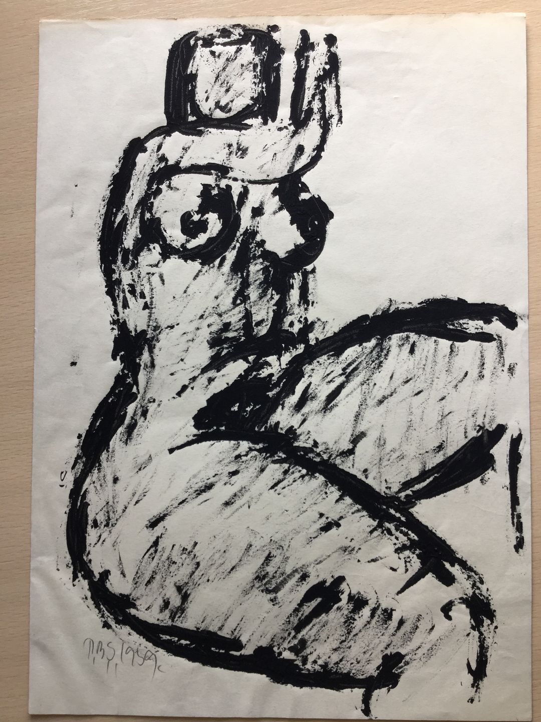 Tegning af Peder Brøndum Sørensen- Kvindelig nøgenmodel 1959.