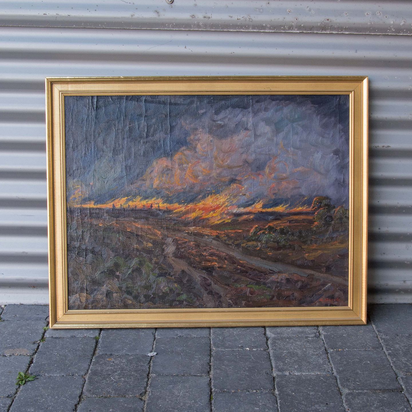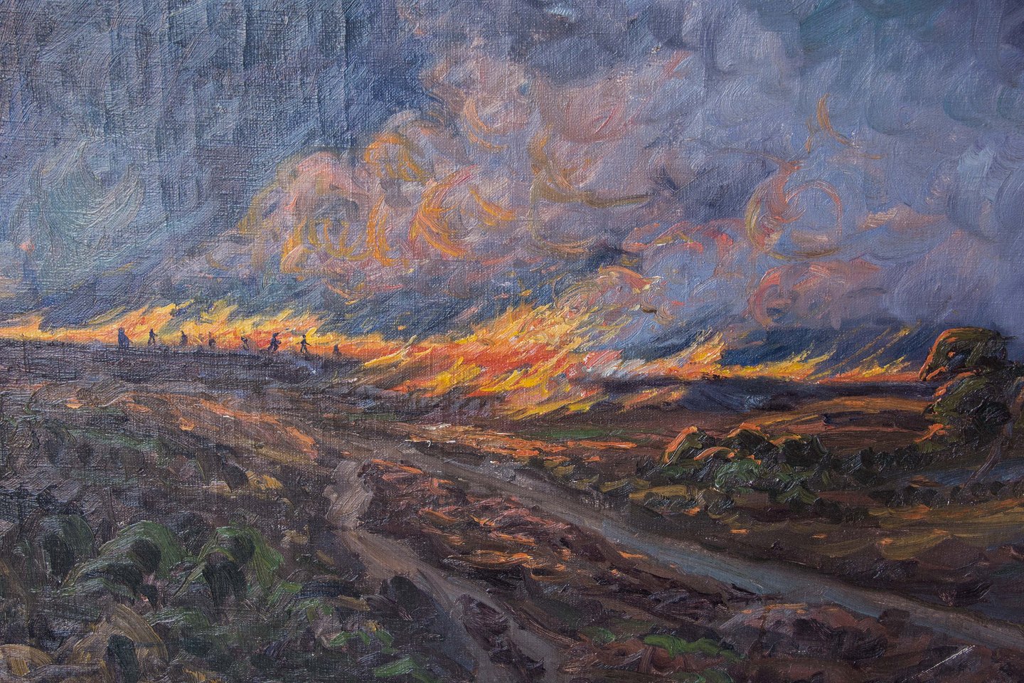 Maleri med motiv brændende mark