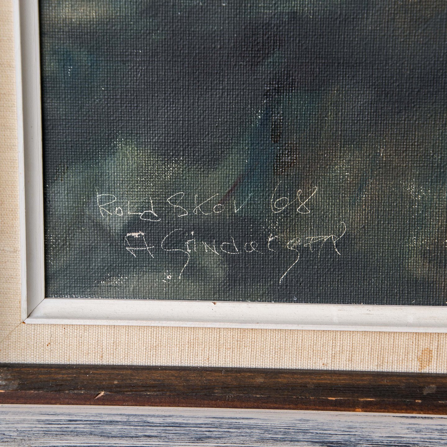 Maleri fra Roldskov, træer ved skovvej fra 1968.