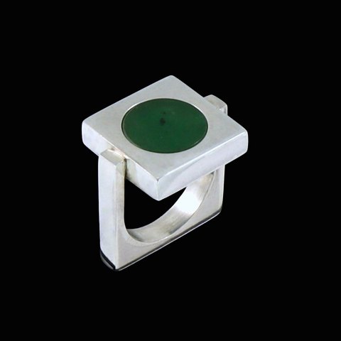 Boy Johansen. Ring i Sterling sølv med nephrit. 1960'erne.