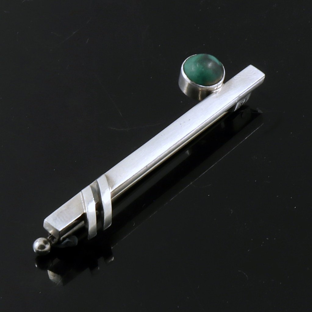 Hans Hansen. Art deco Broche i sterlingsølv med amazonit.