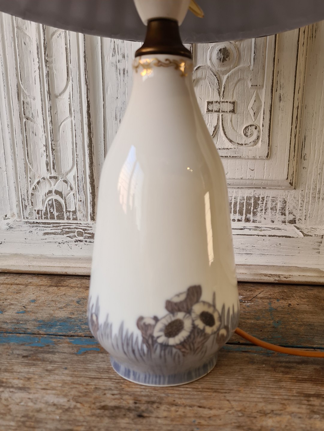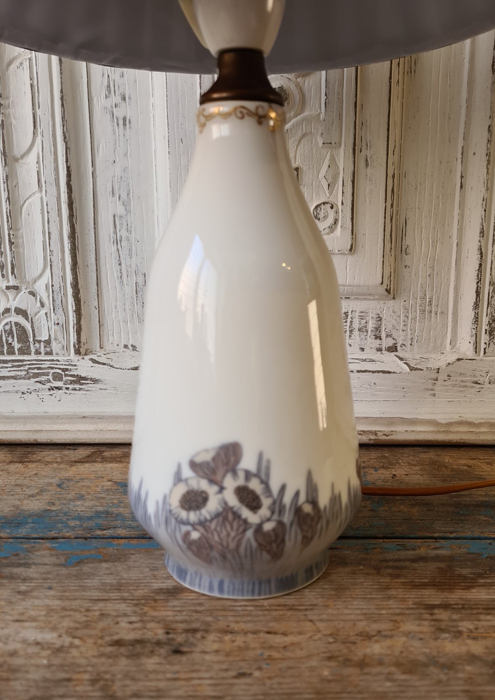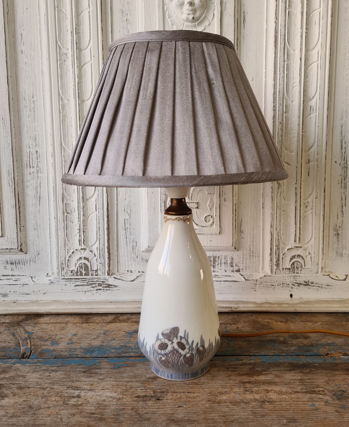 Royal Copenhagen Art Nouveau bordlampe dekoreret med følfod, bemalet af Else Hasselriis 1878-1953