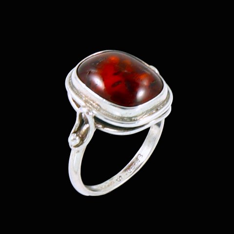 Einer Fehrn. Ring i Sterling Sølv med rav.