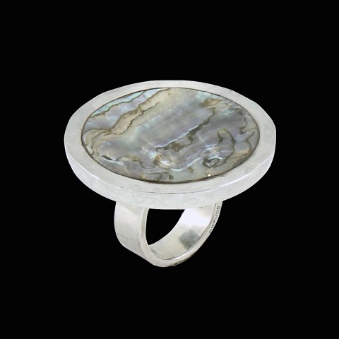 Anne Schiang - Copenhagen. Ring i sterlingsølv med Abelone. 1960erne