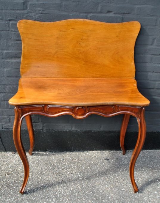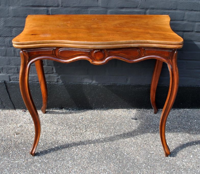 Nyrococo mahogany gaming table with capriole legs, 19th century Denmark. With swivel plate. Room below the plate. H.: 77 cm. W: 88 cm. D.: 43 cm.