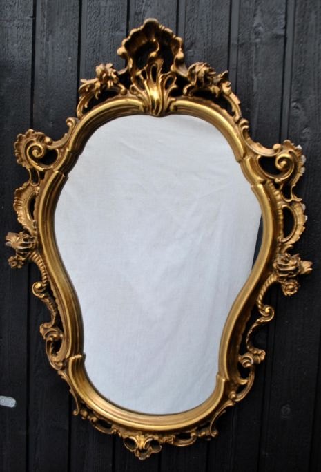 Forgyldt spejl, rococo stil, 20. årh. 90 x 68 cm.
