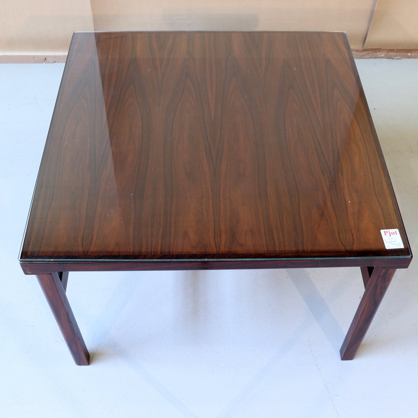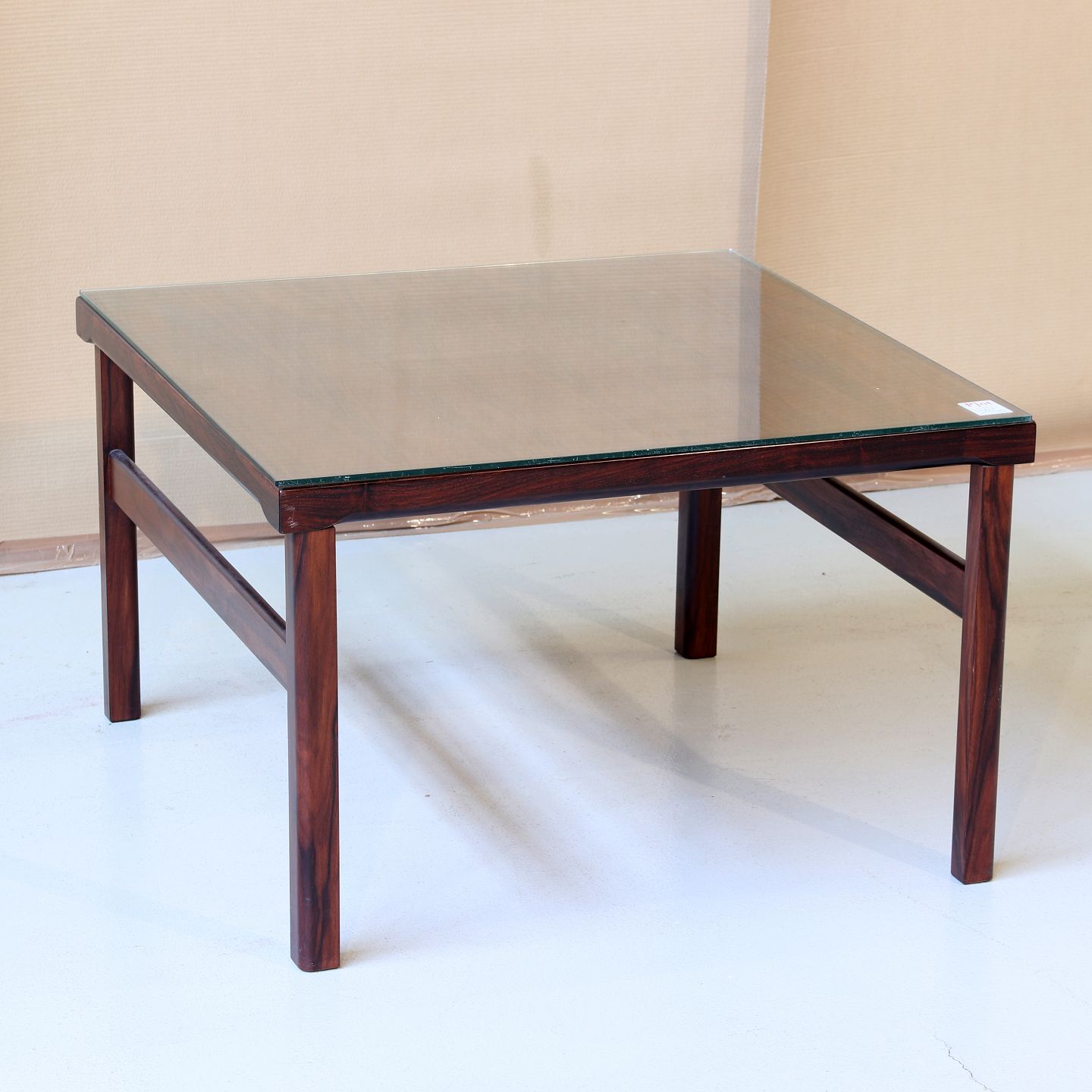 Kvadratisk sofabord i fineret og lakeret palisander m. glasplade,