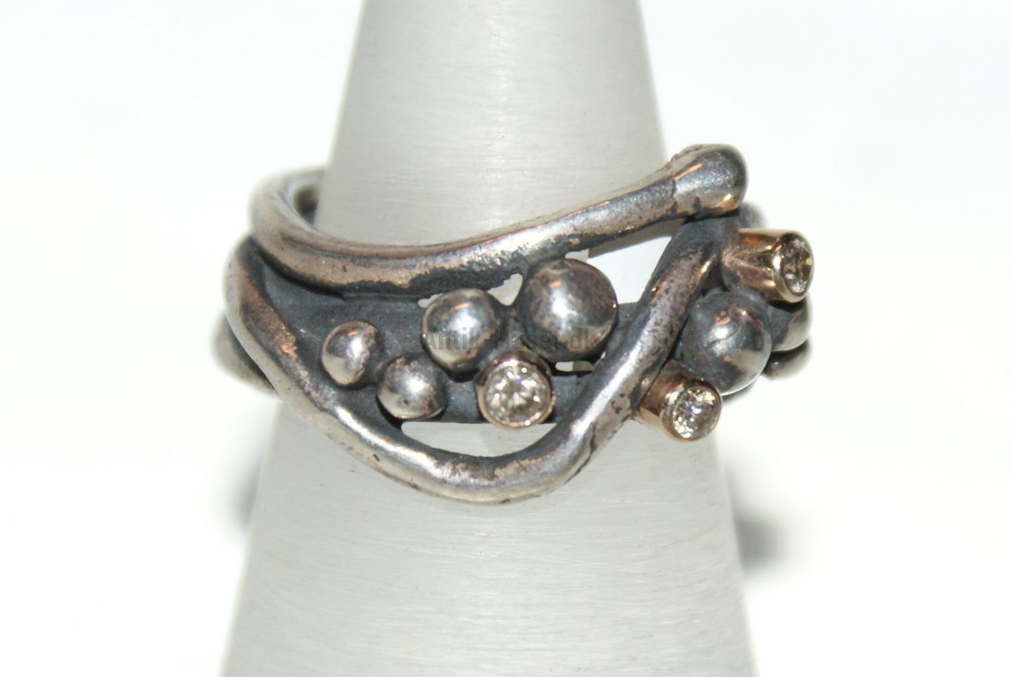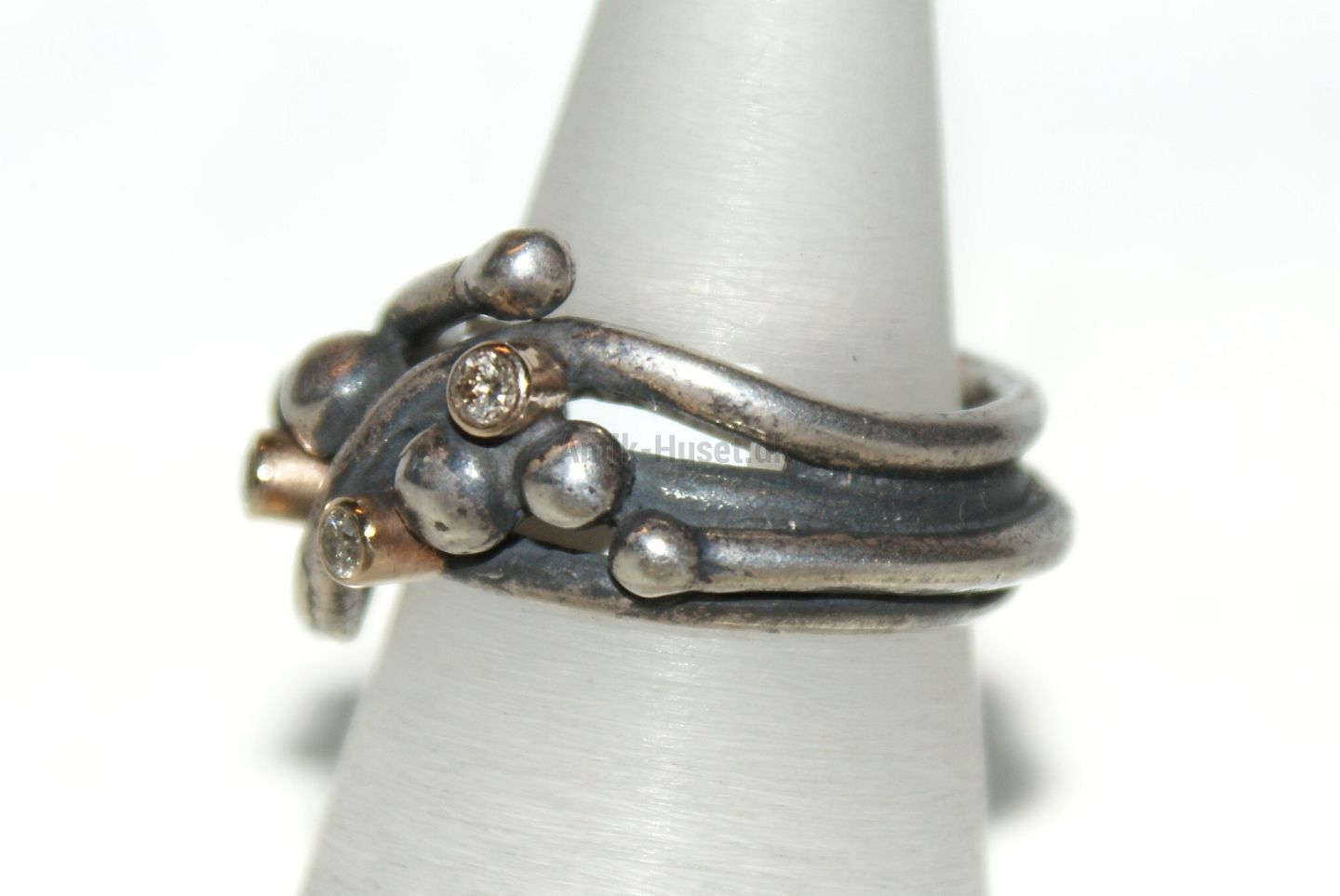 Elegant Toscana ring Sølv Design: By Birdie Sort Rhodineret og 14 karat Guld med 3 Brilliant