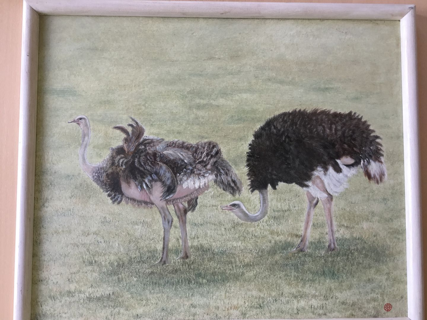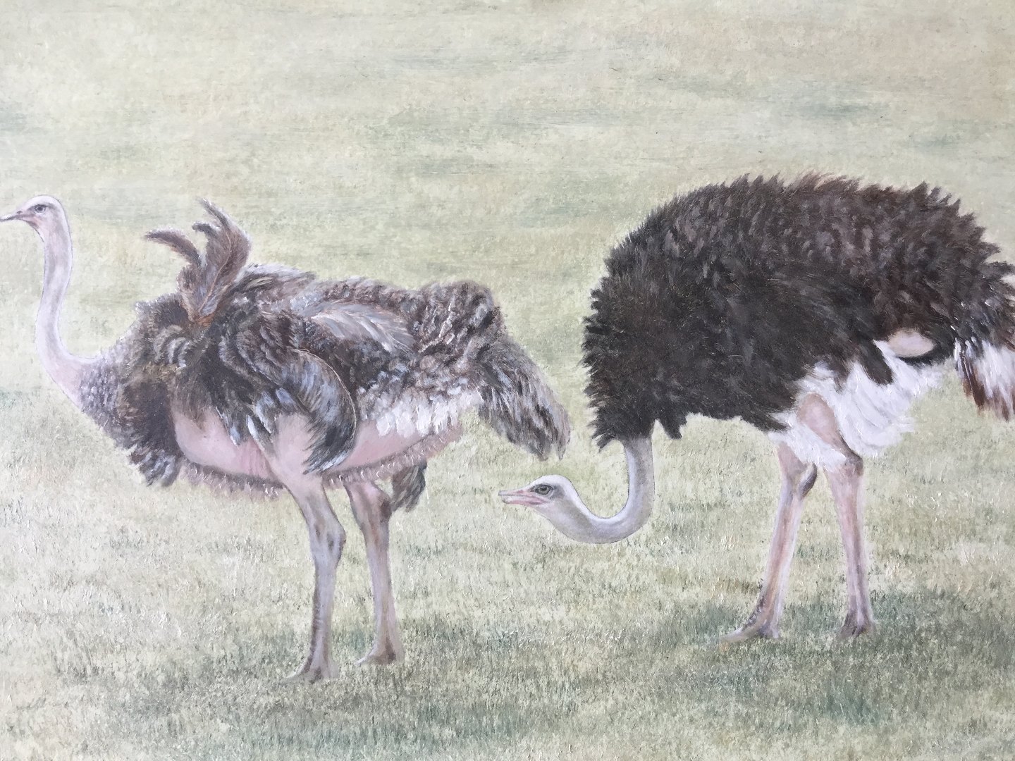 Maleri af Hugo Møller Knudsen - Strudse Aalborg Zoo.