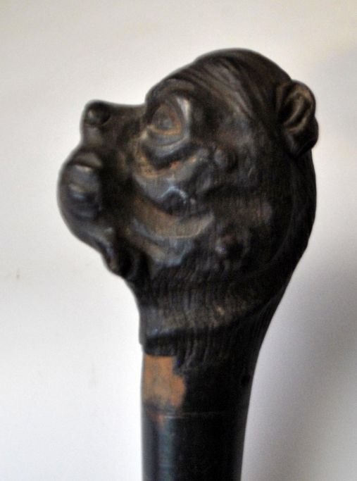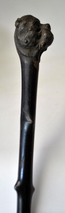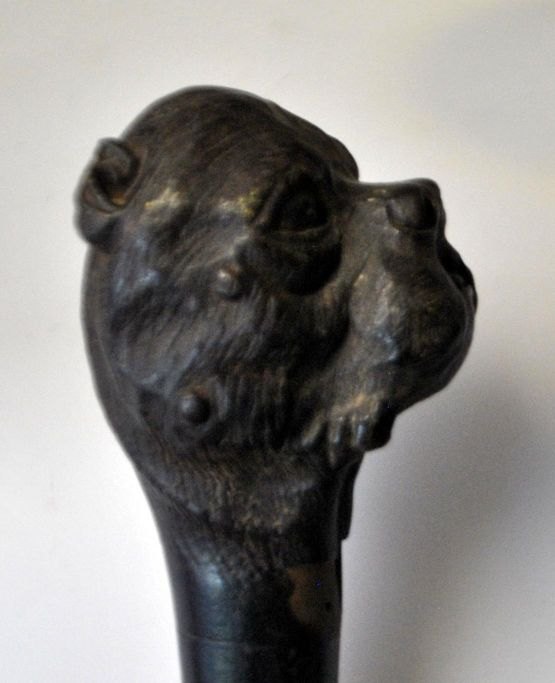 Spadsere stok i mørkt træ med håndtag med skæring af bulldog, 19. årh.
