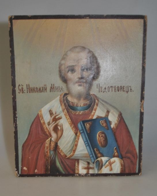 Russian icon, 19th century. Nikolaos from Myra in Lycia. Oil on wood. 20 x 18 cm. The back is painted gray.