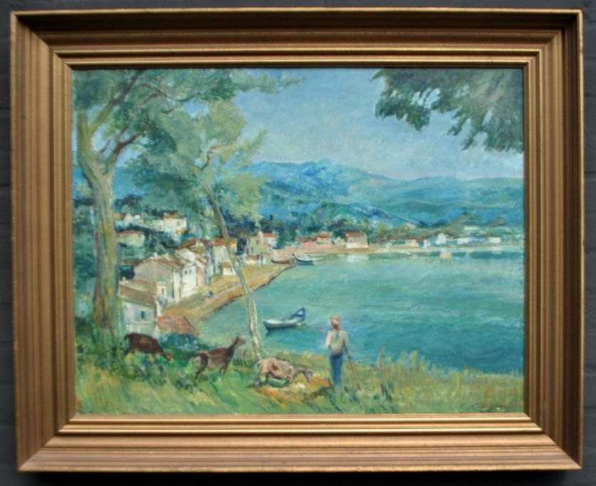 Jacobsen, Ludvig (1890 - 1957) Danmark: La Vista el Puerto Soller, Mallorca, Spanien. Olie på lærred. Signeret. 60 x 80 cm.