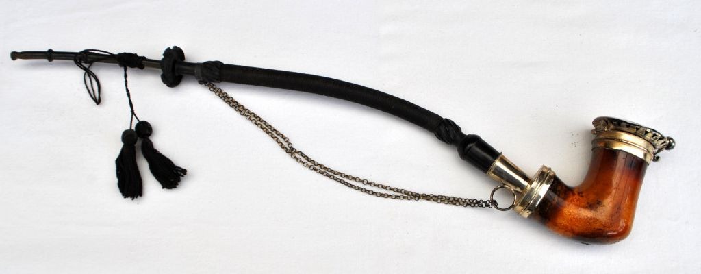 Long pipe with meerschaum, 19th century Denmark. Pipe with silver-plated lid. L .: 47 cm.