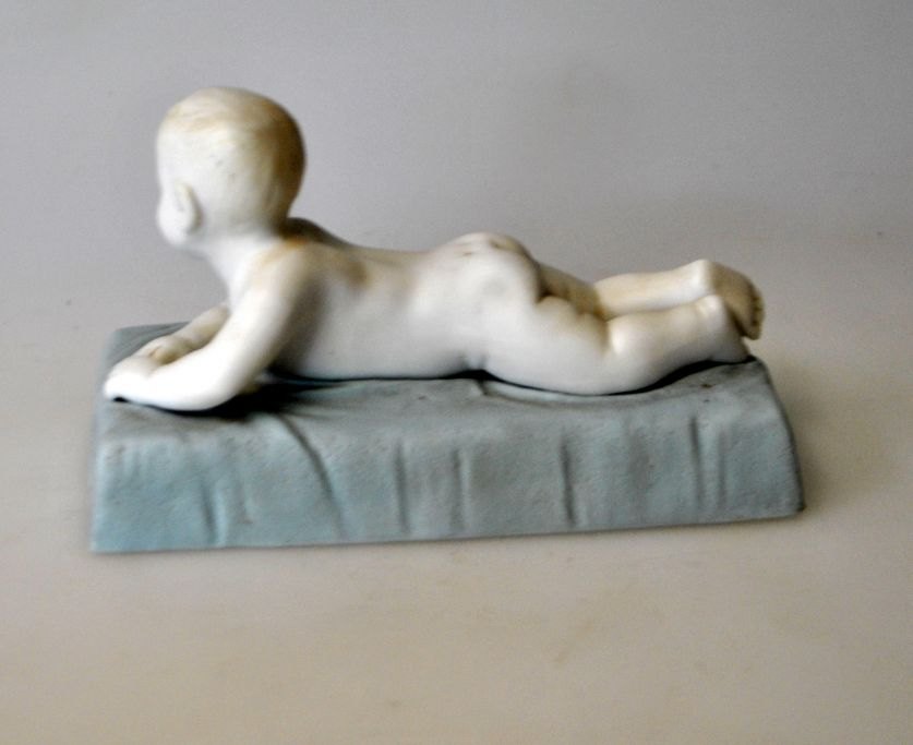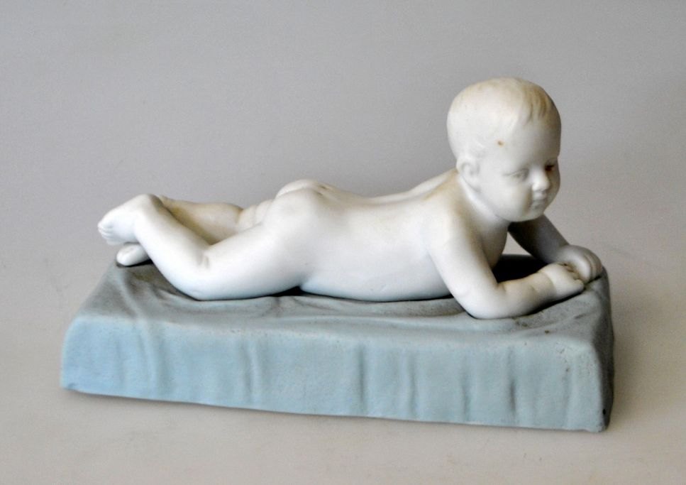 Bisquitfigur af liggende nøgen dreng, 19. årh. Tyskland