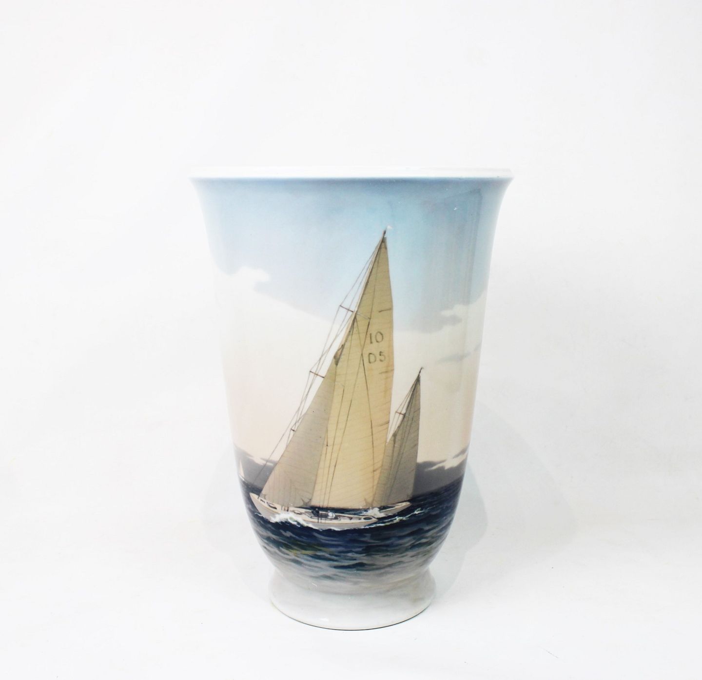 Stor vase med skibsmotiv, nr.: 2821-3558, af Richard Bøcher for Royal Copenhagen.