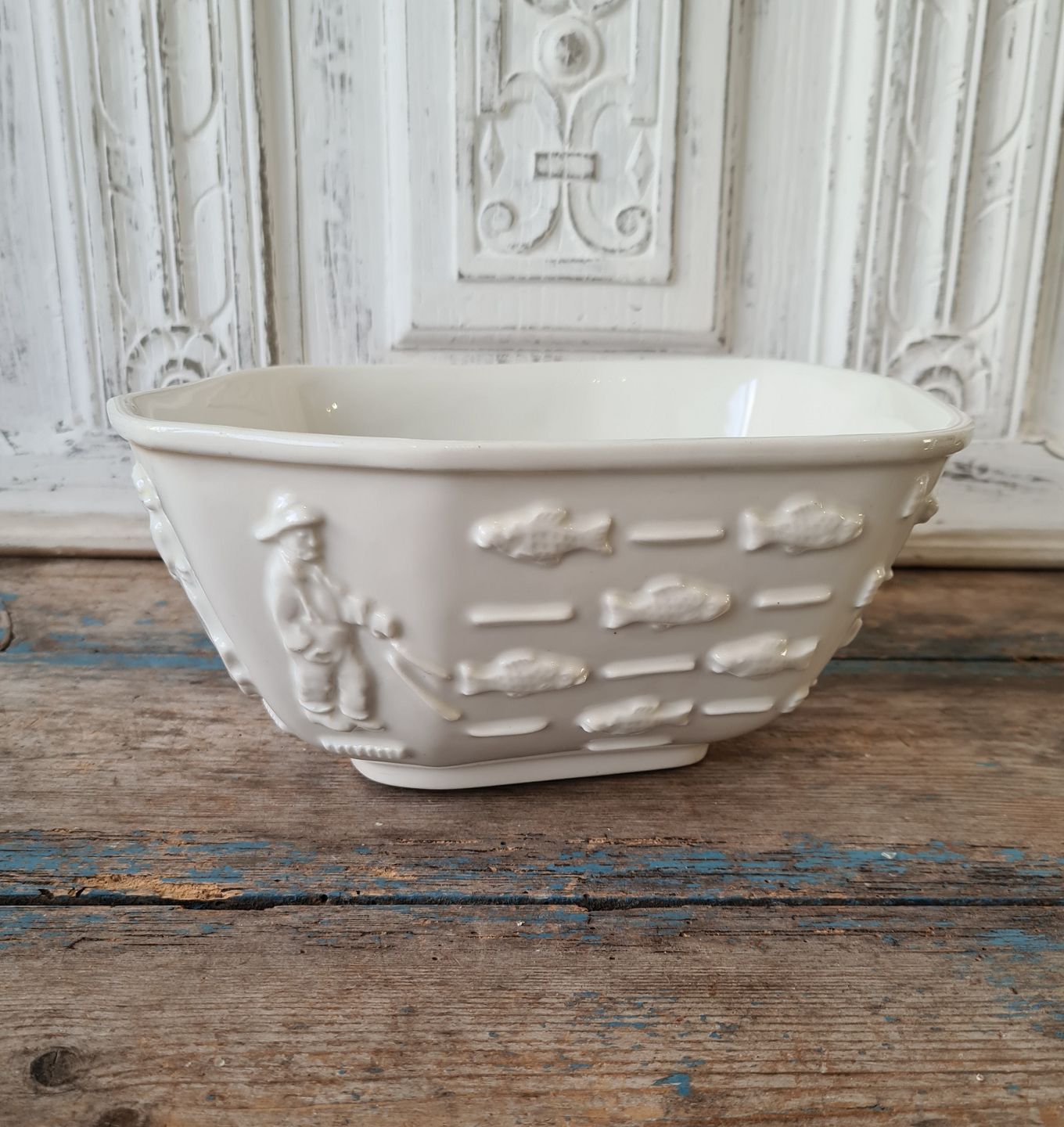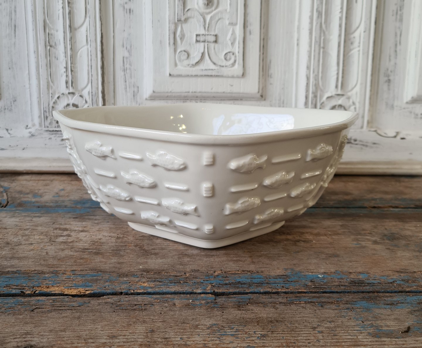 Bode Willumsen for Royal Copenhagen stor Blanc de Chine skål med fiskemotiver i relief