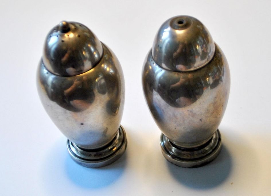 Salt/peber sæt i sølv, deco, 1947, Købehavn, Danmark.