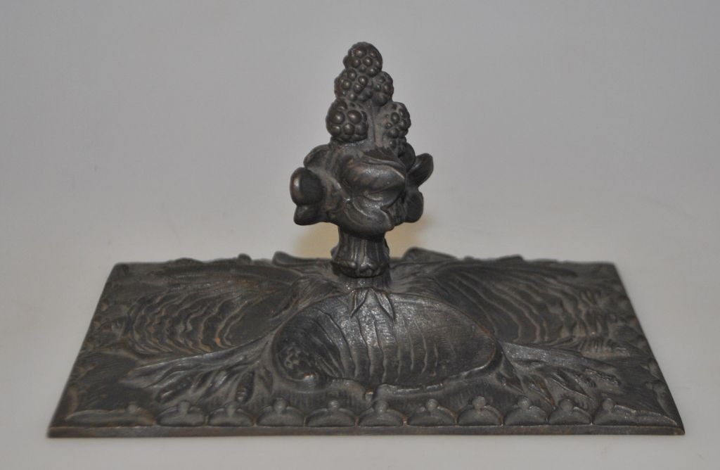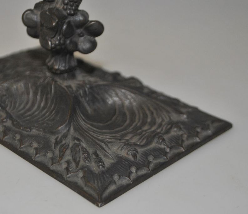 Patineret metal brev holder, 19. årh. Tyskland. Dekorationer i form af muslingeskaller. Hank dekoreret med planter - antagelig havplanter. Udtydelig stemplet. L.: 14 cm. B.: 9,2 cm. H.: 8 cm.