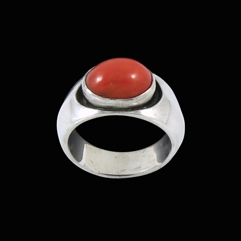 Ejnar Olsen. Ring i Sterling sølv med koral.