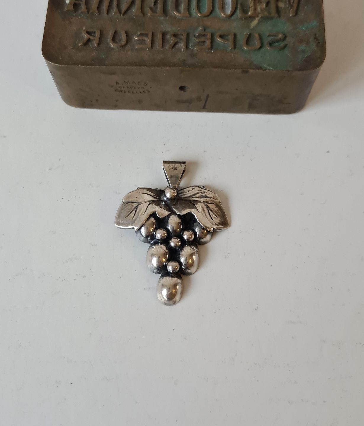 Vintage sølv vedhæng i form af drueklase.