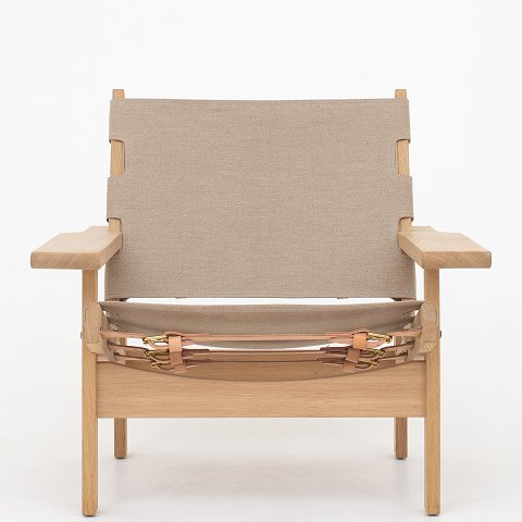 Model 168 - 'Jagtstolen' i sæbebehandlet egetræ med spændt op natur-kanvas, monteret med kernelæder stropper.