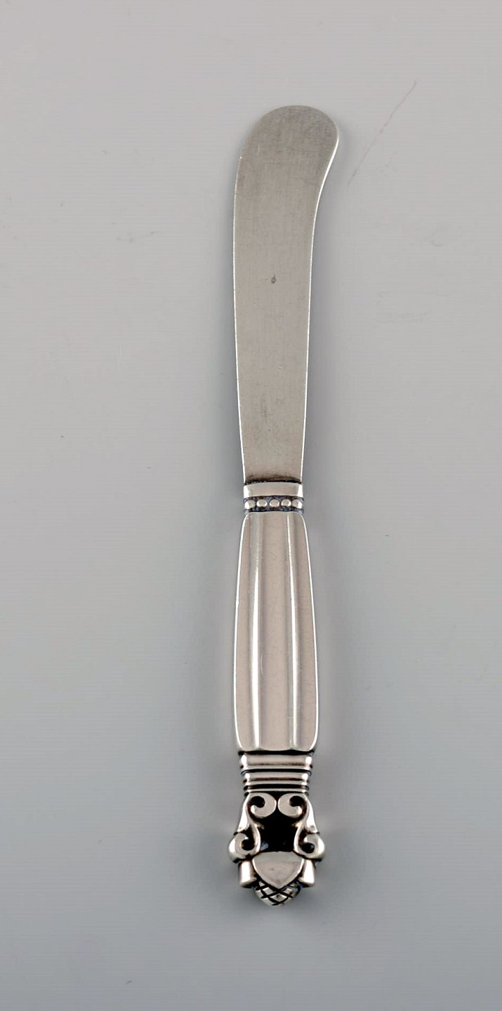 Eight Georg Jensen Acorn butter knives in all sterling silver.