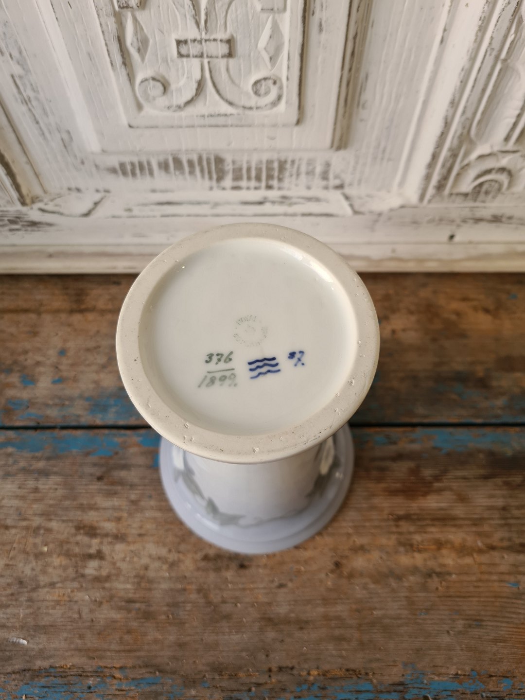 Royal Copenhagen Art Nouveau vase dekoreret med hvide snerler