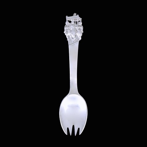 H.C. Andersen Eventyrbestik. 'Kejserens nye klæder'. Skegaffel i sølv med motiv fra H.C. Andersens eventyr. L. 14,2 cm.