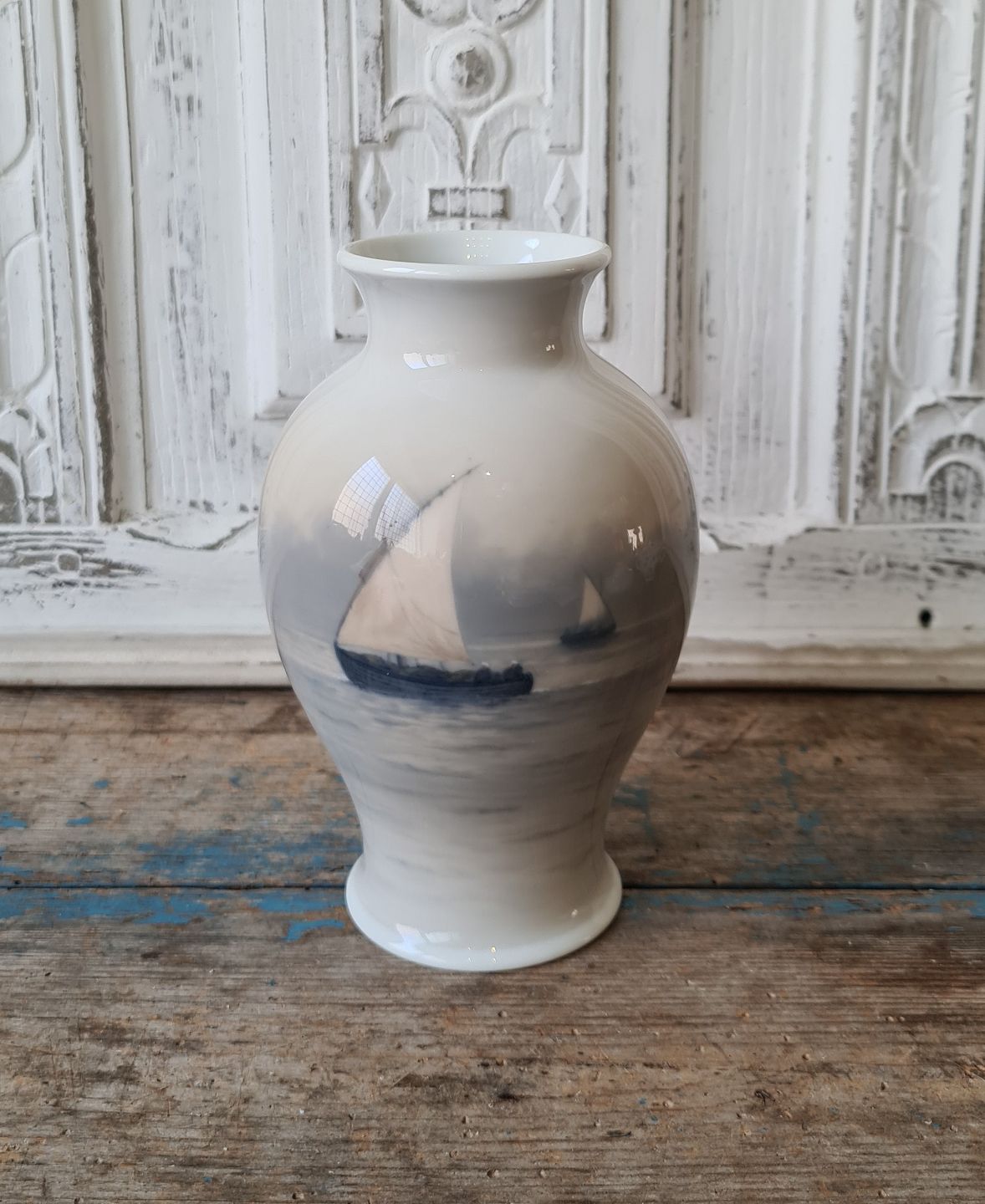 Royal Copenhagen Art Nouveau vase dekoreret med skibe