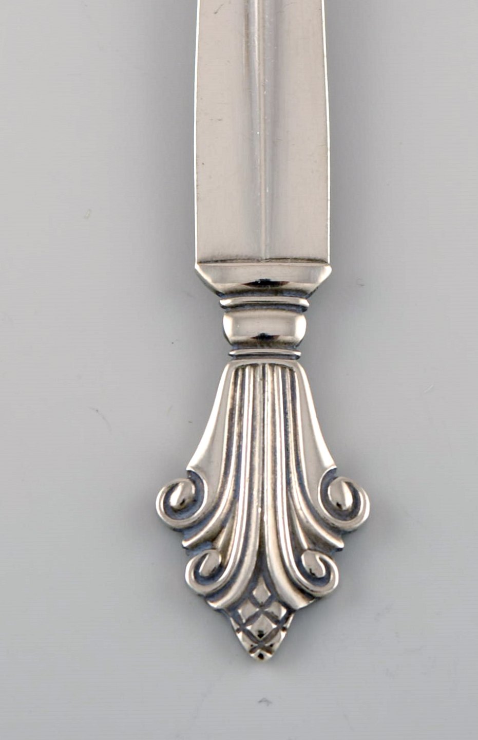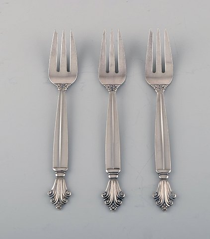 Johan Rohde for Georg Jensen. Tre tidlige Dronning kagegafler i sterlingsølv. Dateret 1915-30.
