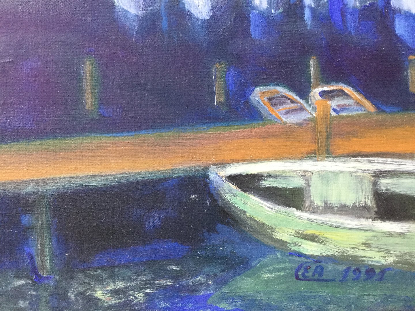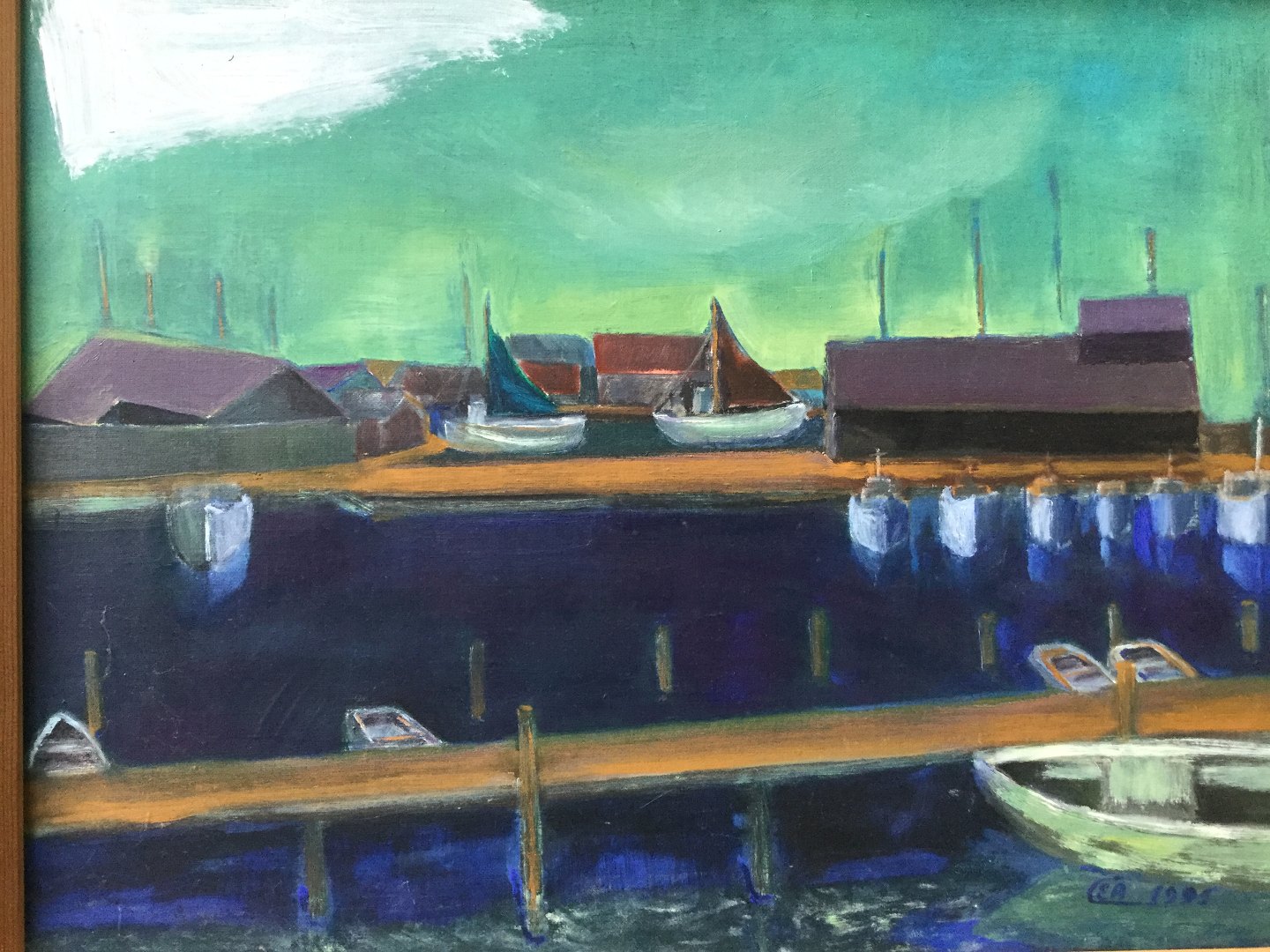 Maleri af Ernst A. Christiansen 1991 - Parti fra Aså Havn.
