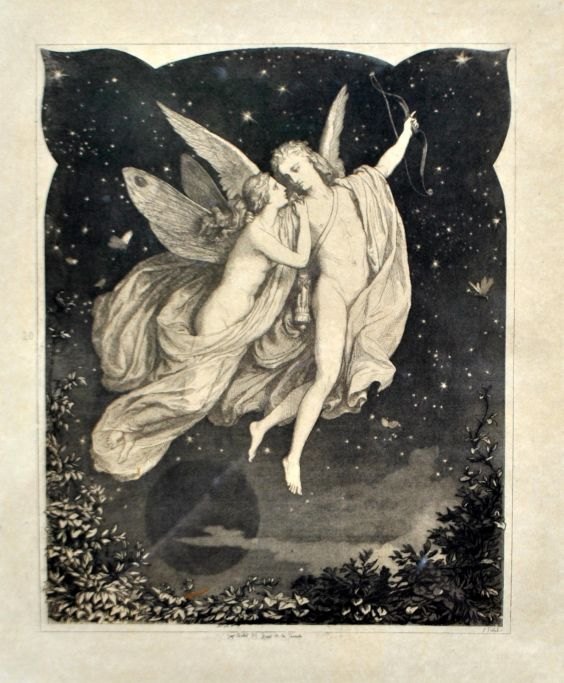 Frølich, Lorens (1820 - 1908) Denmark: L'Amour et Psychè. (2 pcs). Signed 1862 in print. 28 x 22 cm.