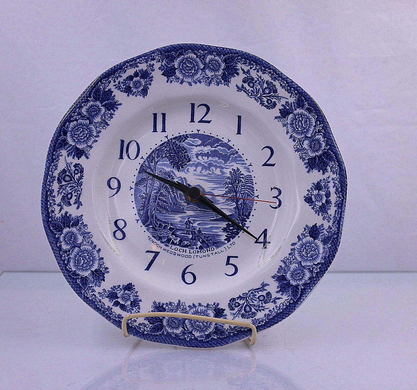 Ur, monteret på fajance tallerken. På tallerkenen står Loch Lomond, Enoch Wedgwood, Tunstall LTD.