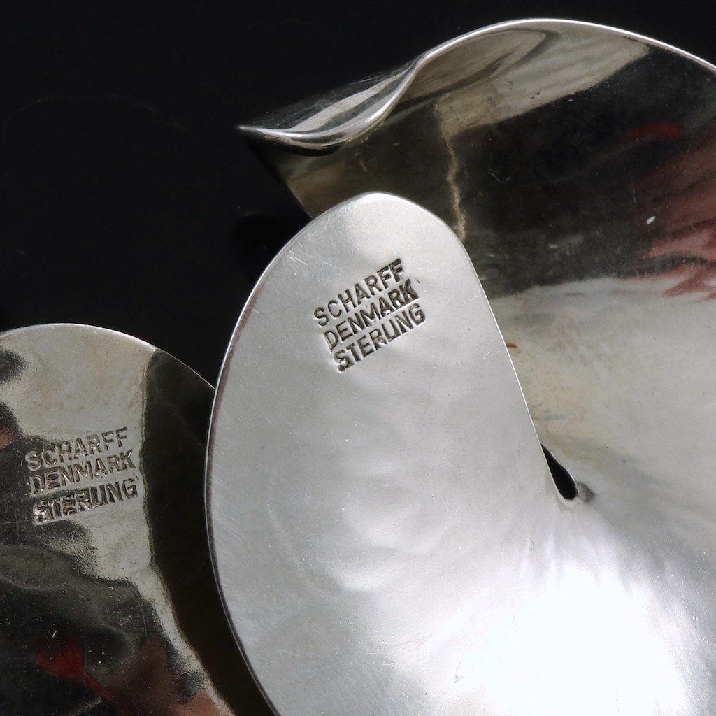 Allan Scharff. Øreringe i hammerslået Sterling Sølv.