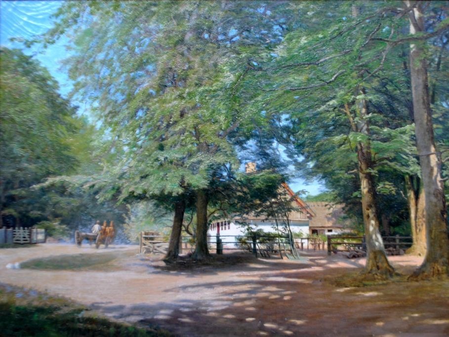Langer, Viggo (1860 - 1942) Denmark: A horse-drawn carriage by a house. Oil on canvas. Signed Strøby 1904. 62 x 83 cm.