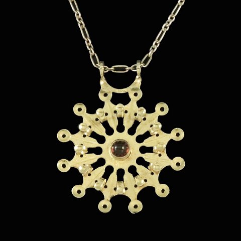 Bent Exner. Fire-gilded Sterling Silver Pendant Necklace with Garnet - 2004