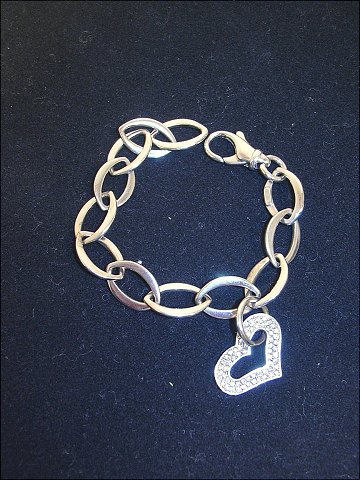 Sølv armbånd med hjerte med zirkoner