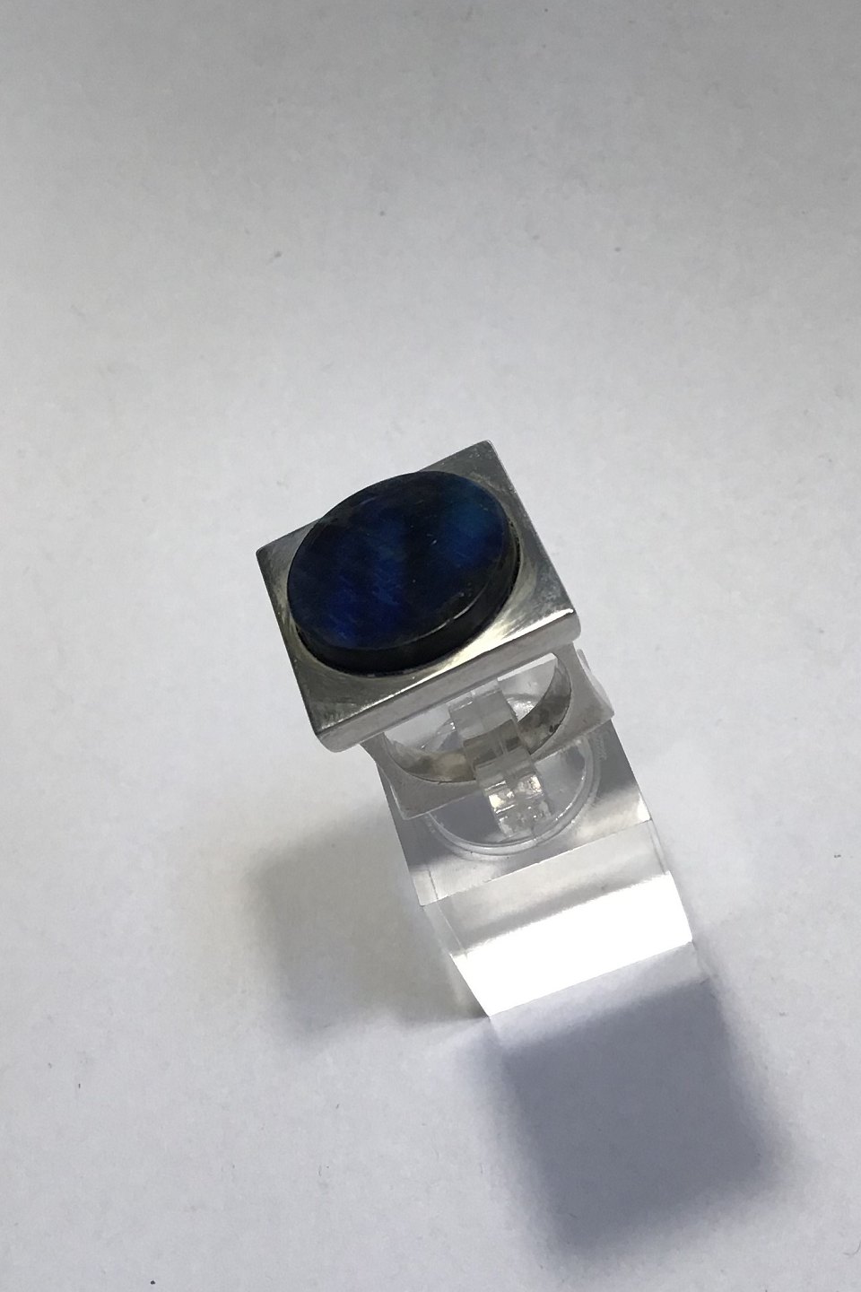 Georg Jensen Sterling Sølv Ring No 171 Bent Gabrielsen Spectrolit Ring Str 50 Måler 2.1 cm x 2,1 cm Vægt 22.4