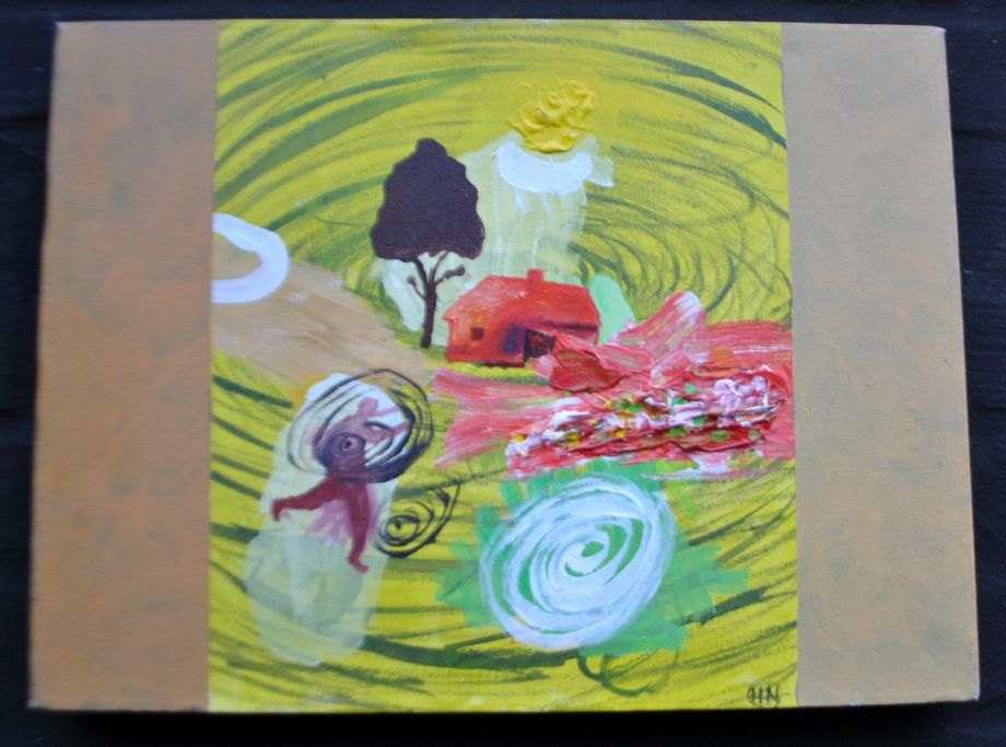 Nielsen, Hans Helge (1942- ) Danmark: Hvirvelstrømme - landskab. Olie på lærred. Signeret. Verso signeret: 30.3.2009. 30 x 40 cm.