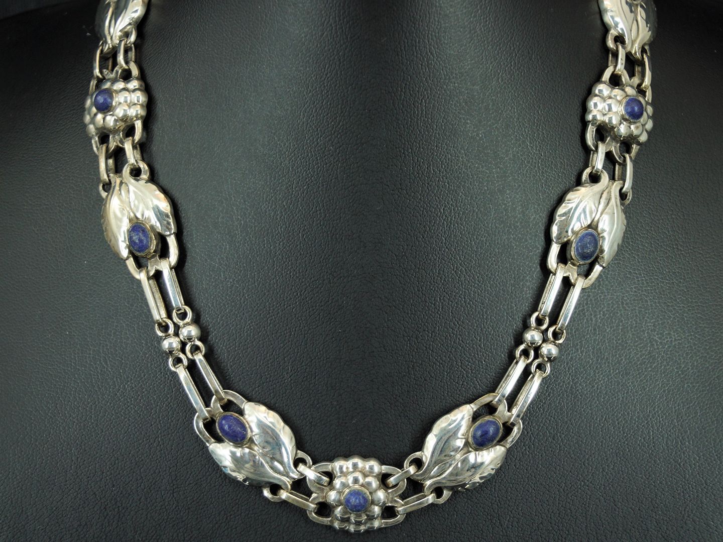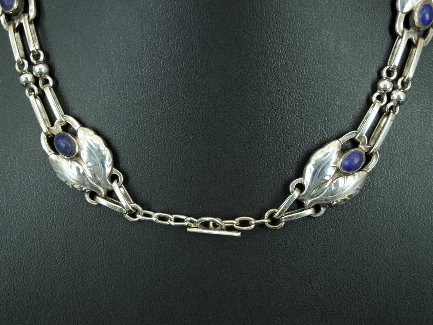 Georg Jensen; Halscollier af sølv prydet med lapis lazuli #1