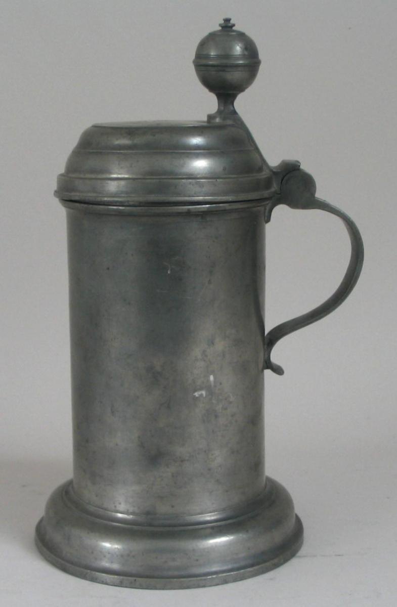 Pewter drinking beer mug, Germany, also called drinking vessel, 19th century. With handle, gecko and wide foot. On lid engraving .: G Ed 1859. H .: 25 cm. Dia .: 13 cm. Stamped on inside of lid .: 1803. With unidentifiable city marks. Great condition